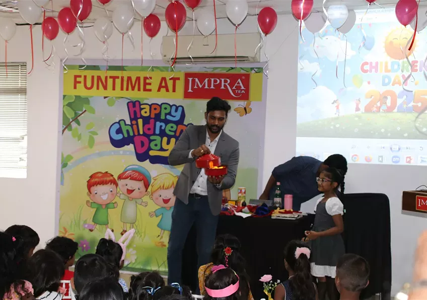 In celebration of World Children’s Day, Imperial Teas Group proudly hosted a joyful event, “Funtime at IMPRA,” marking the first time such a celebration was held on a grand scale for the children of our staff and production center employees. The event took place on 1st October 2025 at the Imperial Tea Exports office premises and was filled with cheerful activities for children of all ages. The day featured a variety of fun games inspired by IMPRA Tea, along with lively entertainment including a magic show and colorful face painting sessions. The celebration was made possible through the collaborative efforts of staff from the Group’s tea, spices, packaging, and beverage subsidiaries. Over 60 children participated with boundless excitement, each leaving with a special gift and a bright smile. It was truly a memorable evening that will remain cherished in the hearts of our little ones for years to come.